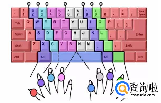 手指分工,就是把键盘上的所有键合理地分配给十个手指,且规定每个手指对应哪几个键,这些规定基本上是沿用原来英文打字机的分配方式。