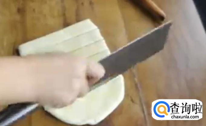 揉好面团后,放在一旁20-30分钟左右,然后用擀面棍将面团擀开,但不要擀得太薄