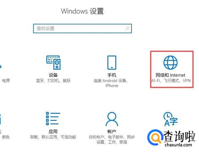 弹出的界面,我们点击网络和Internet;