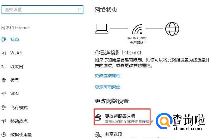 弹出的界面,我们点击更改适配器选项;