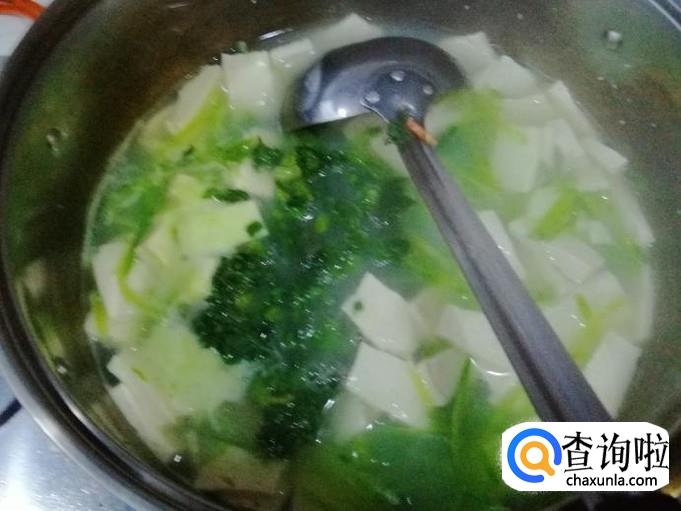等蛋花浮出汤面,这时就可以关火,加入适量香油,搅拌均匀,这样我们的,萝卜豆腐芹菜叶子汤就做好了,盛入碗中,就可以享受热乎美味汤了。