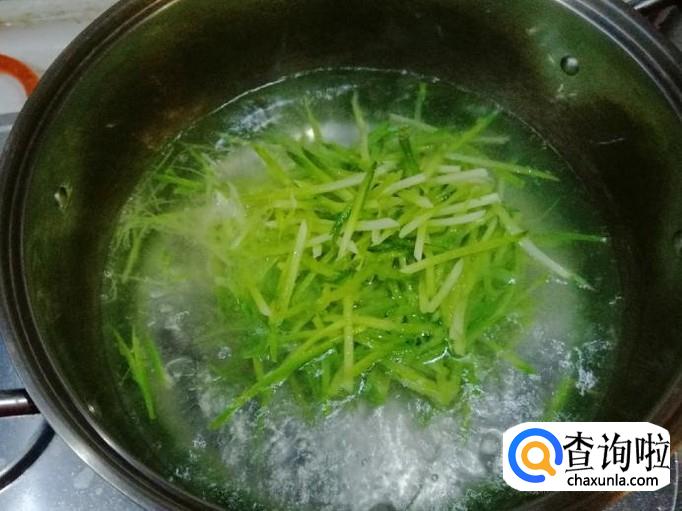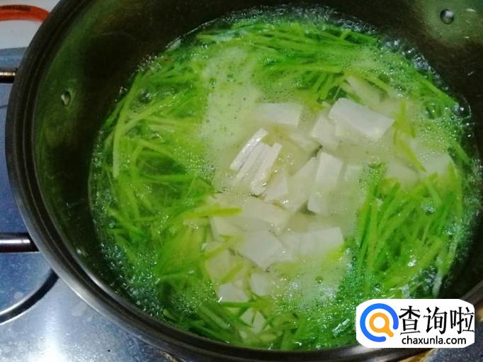 煮锅烧水,水开后放入备好的萝卜丝,煮一两分钟后,加入备好的豆腐,再次煮开就可以了。