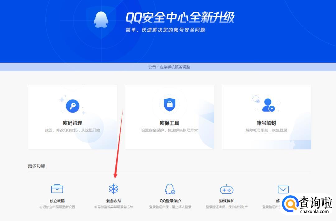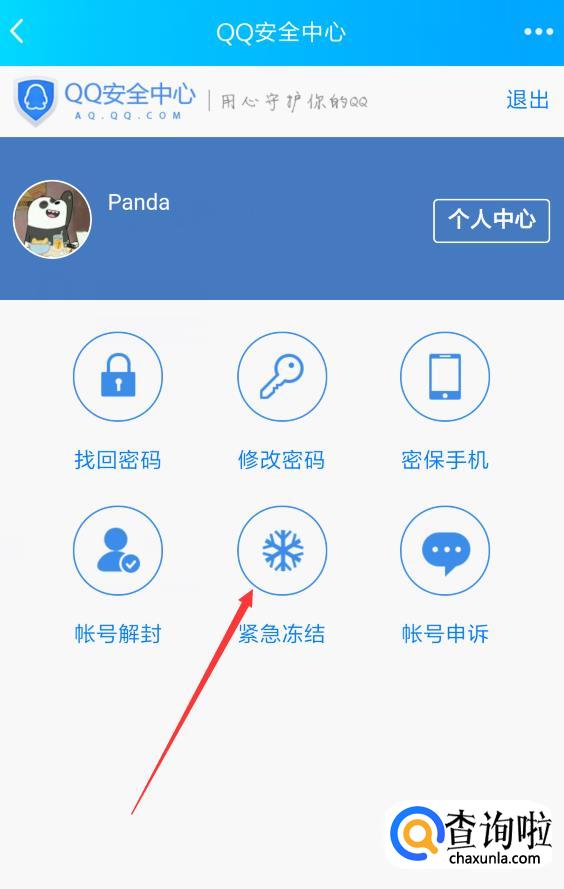 然后我们手机QQ的界面跳转到安全界面,选择到【紧急冻结】。