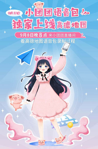 小团团导航语音包在高德地图推出的一款魔性的语音包,于2020年9月11日已经在高德地图上线,用户可以前往高德地图APP中,下载设置“一条小团团语音包”,然后就可以在使用高德地图导航的过程中听到团团的声音啦!一条小团团OvO,斗鱼人气主播,直播游戏:绝地求生、英雄联盟 、歌手。2020年1月8日,为手游《剑与远征》中的游戏人物“酒馆少女”配音,并献唱品牌态度曲《AFK就很棒》。