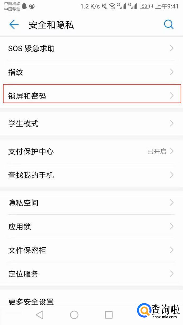点击【锁屏与密码】: