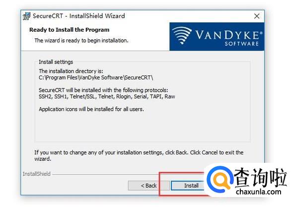 最后会进入安装界面,直接点击下方的Install就会自动安装了,如下图所示