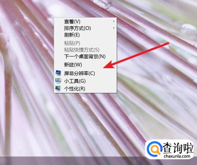 把数据线连接上电脑后,我们右键点击一下桌面,然后在右键菜单上点击打开‘屏幕分辨率’。