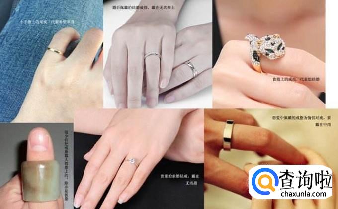 每个手指所戴的戒指含义各不相同。无名指——表示已经订婚或者已经结婚、中指——表示正在热恋中、食指——想结婚,表示尚未结婚、大拇指都是代表权势的意思,也可以做自信的意思。小指上则表示独身或已离婚。