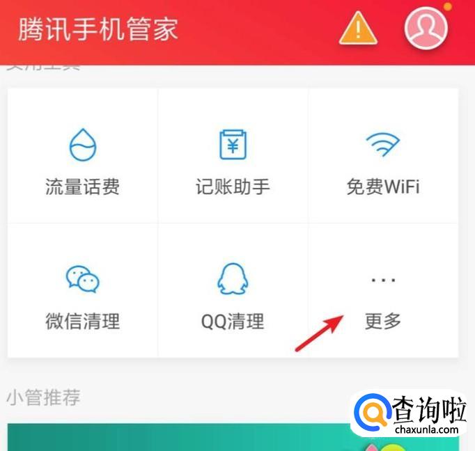 打开手机管家后,点击‘更多’