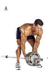 俯身伸髋,双手握住杠铃稍微宽于肩宽,膝盖弯曲身体微微前倾,躯干和地面约成70度左右,如此背阔肌会运动的更剧烈一些,手臂伸直腰部弯曲。