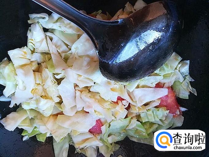 番茄、甘蓝、葱、植物油、食盐、鸡精各适量