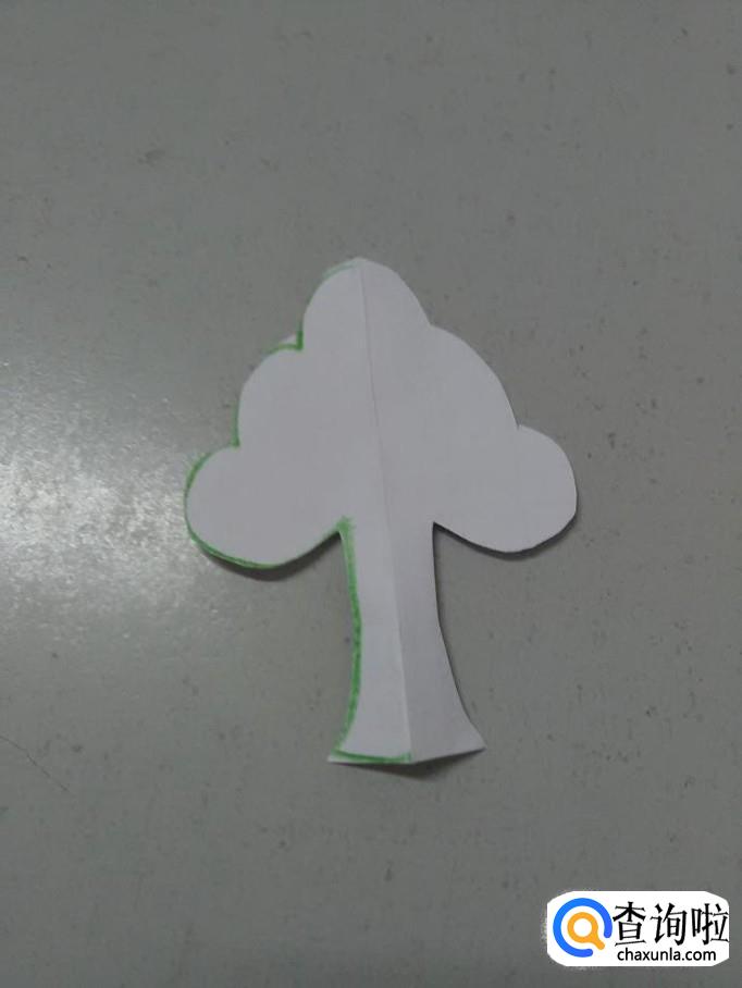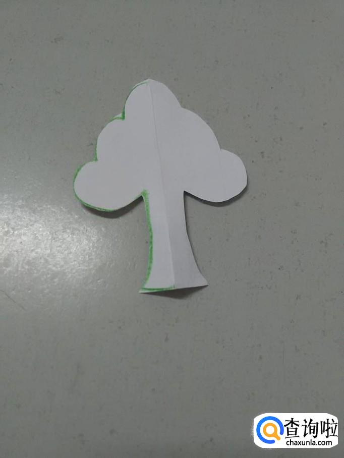 用剪刀沿着左侧的轮廓线,将大树剪下来,打开后,就是一张树剪纸。