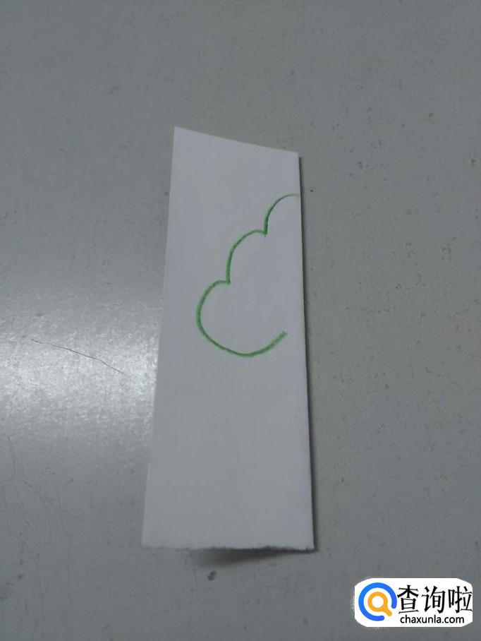 用绿色彩笔在纸的右边画三条相连的弧线,表示树冠。