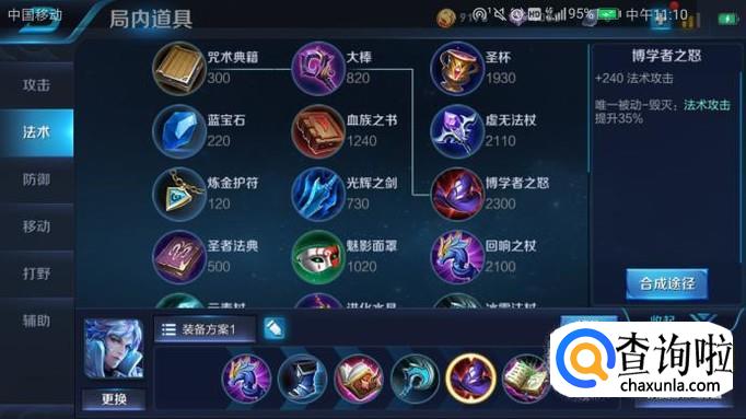 装备四:博学者之怒。因为博学者之怒是唯一被动毁灭,诸葛亮使用它可以提升35%法术攻击。