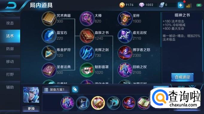 装备二:噬神之书。因为噬神之书是唯一被动嗜血,诸葛亮利用它可以增加25%法术吸血。