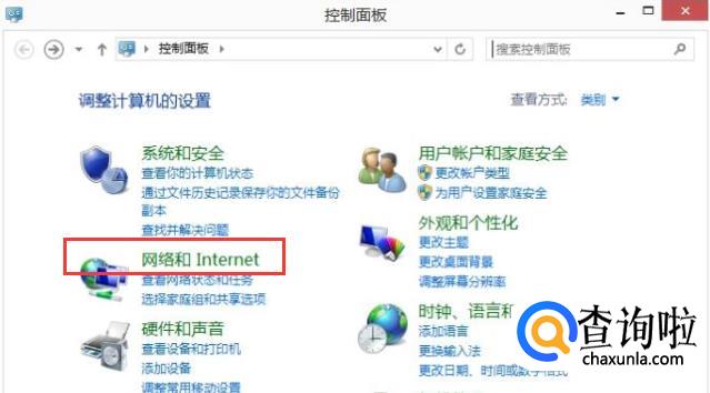选择网络和网络和 Internet。
