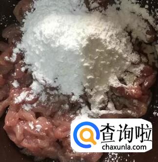 猪肉切丝放进碗里,加入适量的淀粉和料酒拌匀腌制半小时。