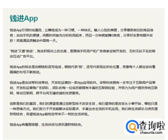 钱进不是锁频软件,是比较常见的广告浏览APP。用户通过观看广告和回答问题来取得收益,一般每天花费5~8分钟,有0.5元左右的收入。不过广告投放时段有限,过了投放区间就没有广告能点击了。