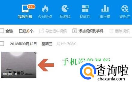 然后通过数据线将手机和电脑连接起来,如果电脑里安装了360助手,那么在电脑端即可同步看到这则视频,如图一,