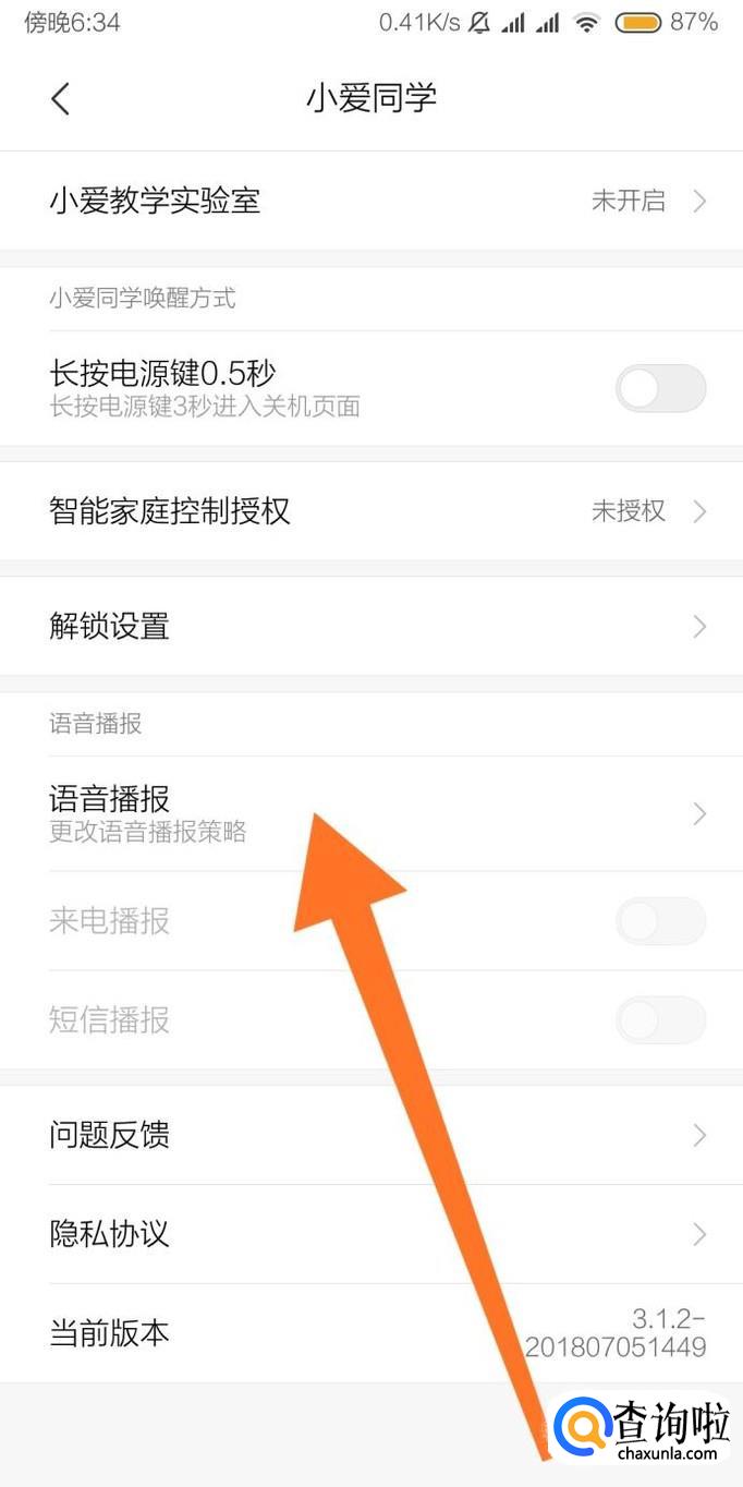 再找到“语音播报”选项,点击确认。