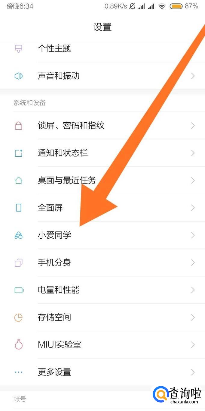 然后点击进入“小爱同学”或者“语音助手”选项。