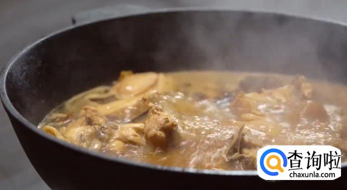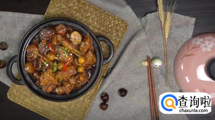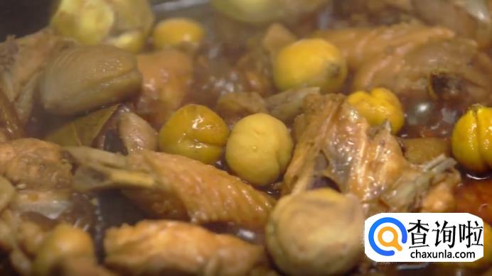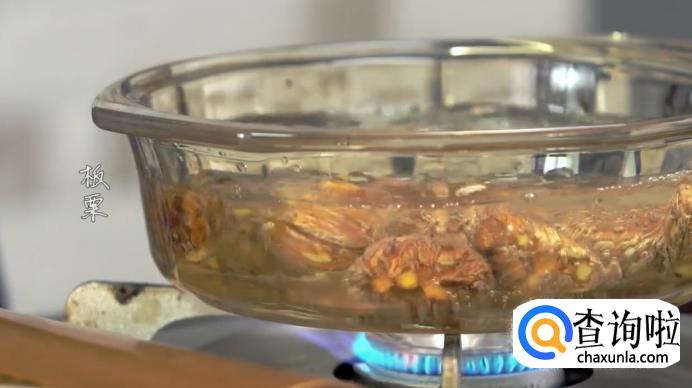20分钟之后,打开锅盖加入板栗,再盖上锅盖继续炖煮15分钟。