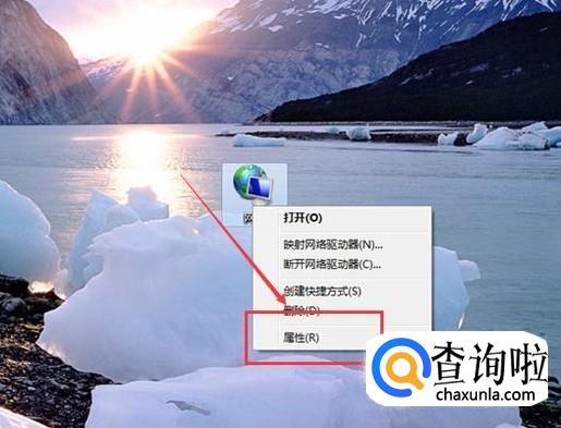 首先找到WIN7系统电脑桌面的【网络】图标,接着鼠标右键点击该图标,之后再点击【属性】按键。