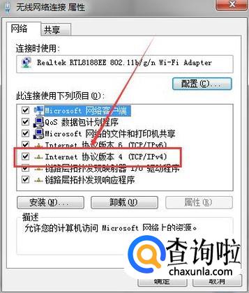 接着再在【属性】对话框中找到【Internet 协议版本4】并进行点击。