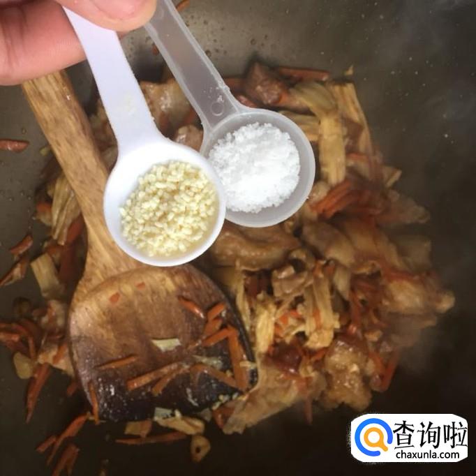 然后往锅中加入一勺的盐和一勺的味精,翻炒片刻就可以出锅了。