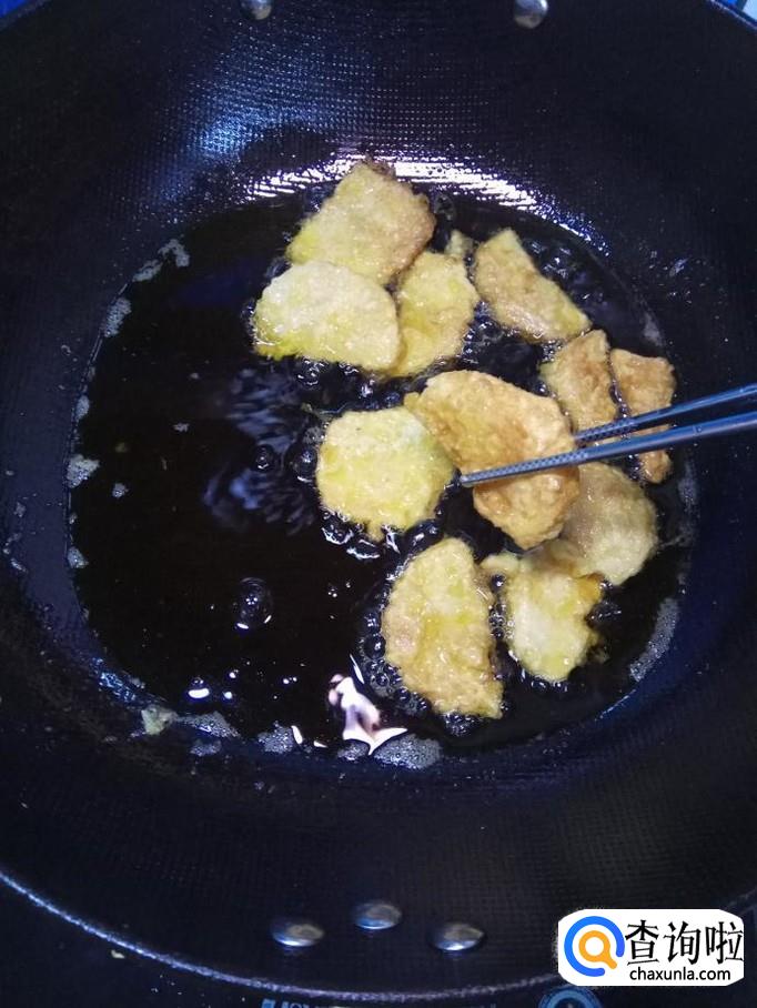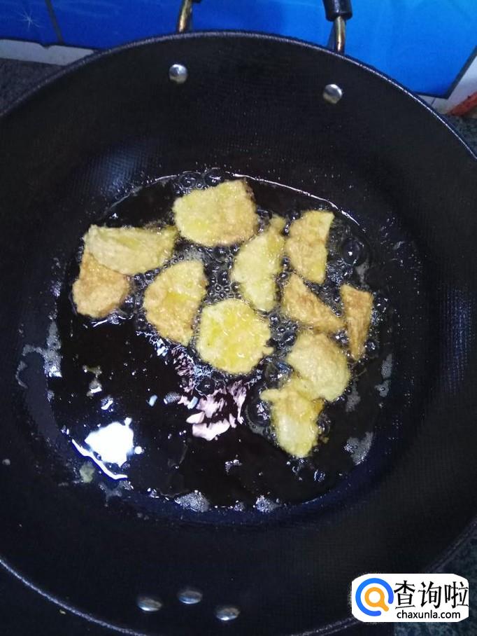 锅中放入适量,油温五成热,将备好的苹果放入锅中,小火慢炸。