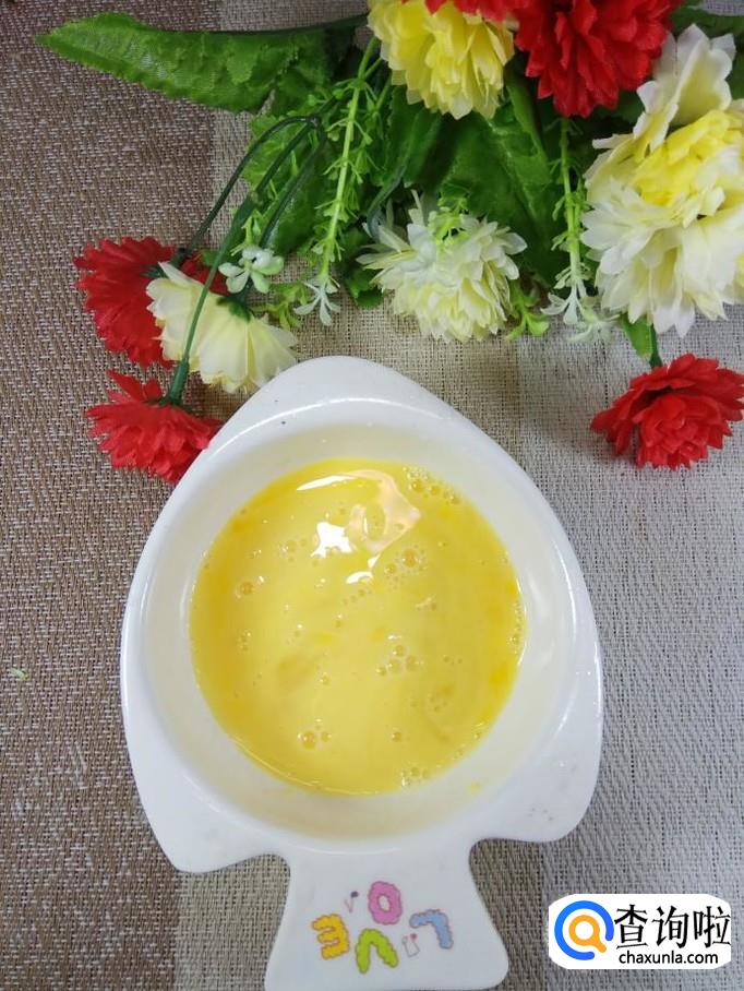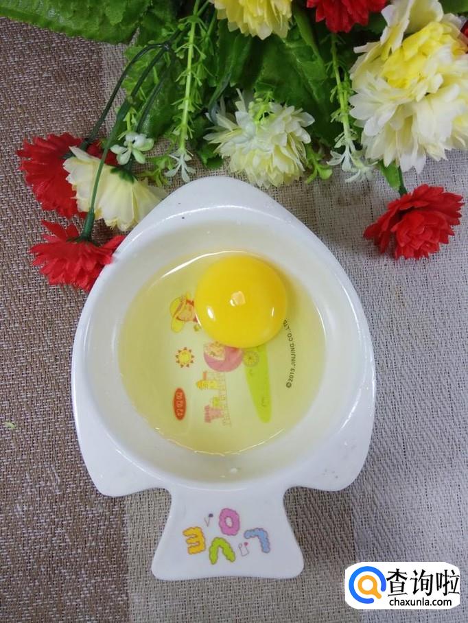 准备一个鸡蛋,打入碗中备用,鸡蛋可以增加苹果的营养价值。