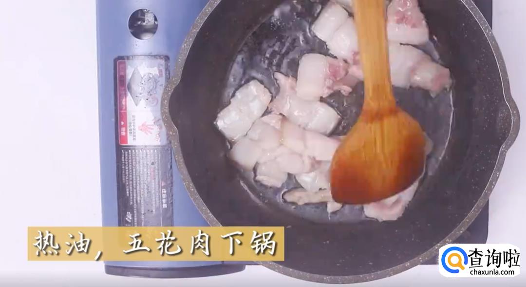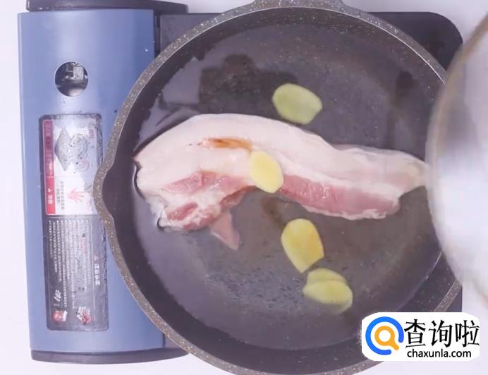 锅中加水,放入五花肉、姜片、料酒,加盖开火煮至五花肉熟透。