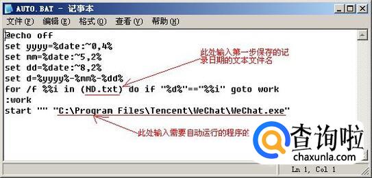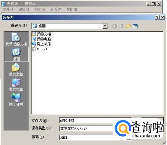 再建一个TXT文本文件,打开文件,把下面命令复制粘贴到文本文件中,然后命名保存文件,比如AUTO.BAT。