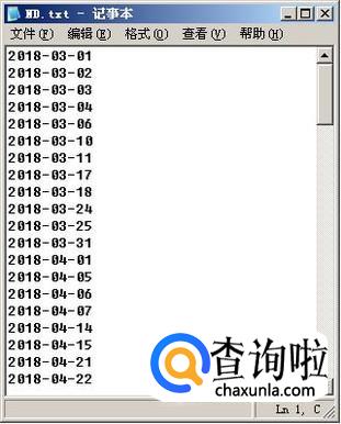 首先新建一个TXT文本文件,打开文件,按下图格式把想要启动程序的日期输入到文件中。然后命名这个TXT文件,比如ND.TXT,保存文件。