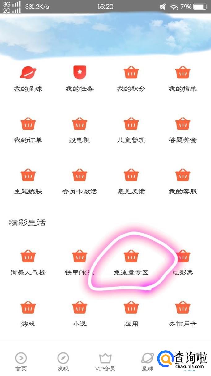 紧接着,我们滑至屏幕下方的的“免流量专区”