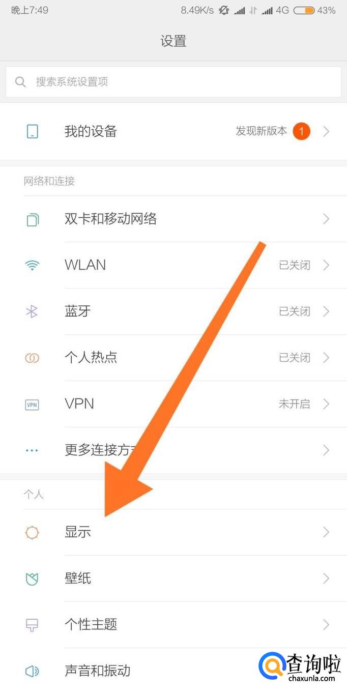 然后点击进入“显示”设置。