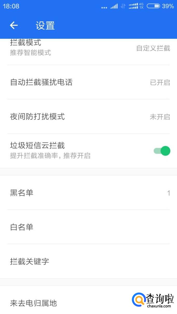 点击进入以后,将垃圾短信云拦截点击开启,就可以屏蔽一些垃圾短信了。