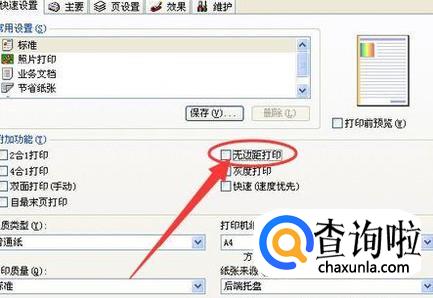 进入该页面之后,在“无边距打印”前面打上对勾,点击“确定”即可。