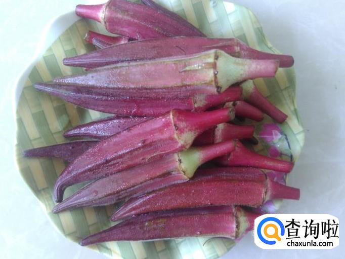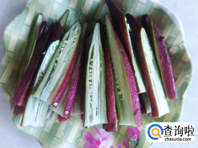 首先把秋葵清洗干净,然后切去头蒂,再把秋葵切成两边。