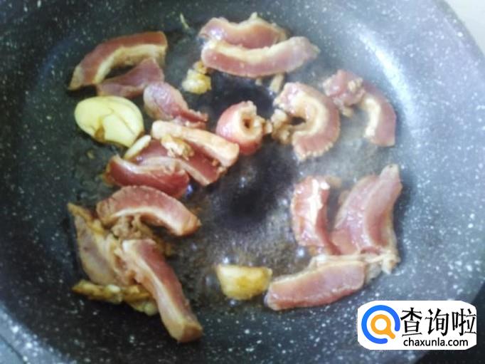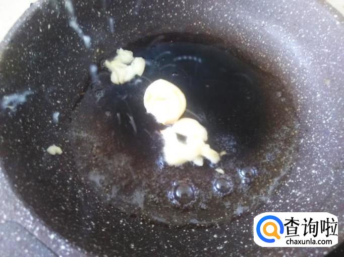 开火下油,放蒜米进去爆香。