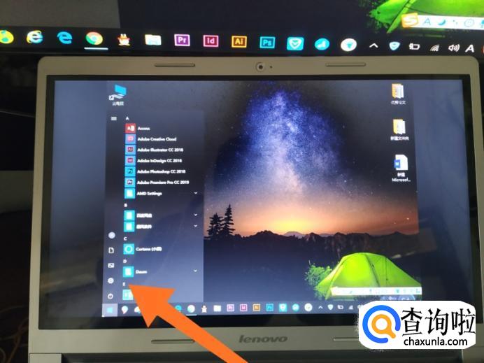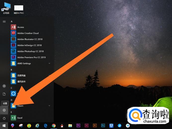 接下来还可以具体设置外接显示器的显示参数,首先点击电脑桌面左下角开始菜单,然后点击锯齿状设置图标。