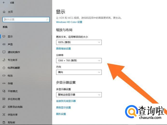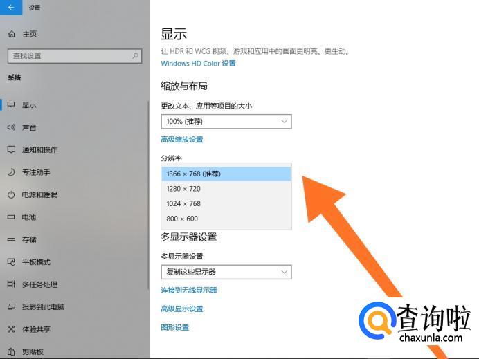 接着点击“分辨率”设置选项,设置外接显示器的显示分辨率。