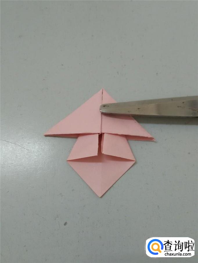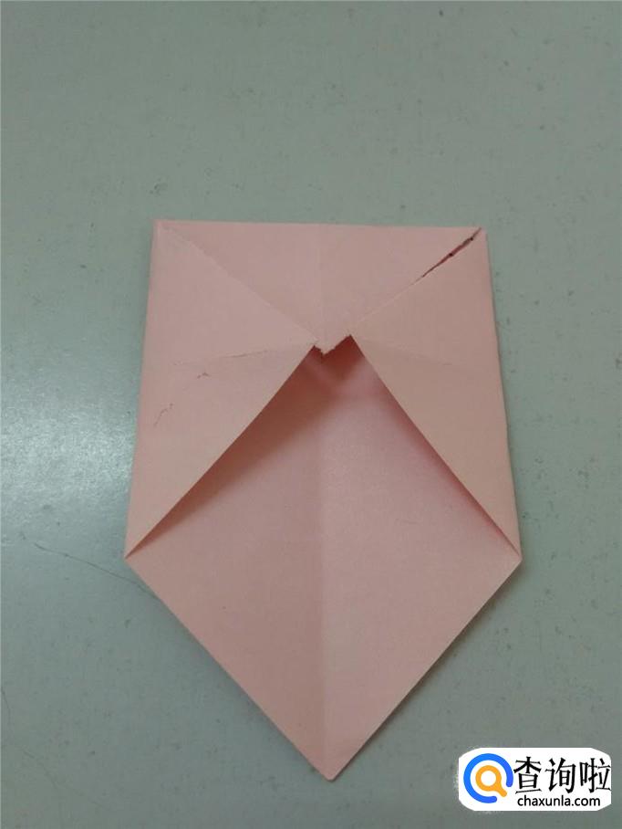 把三个角往中心折,压平,下面那个角不动。