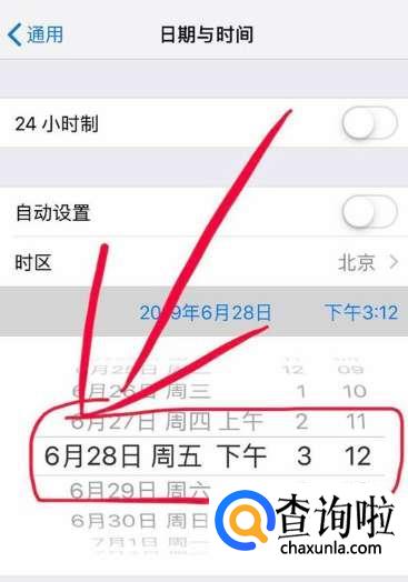 然后我们把“自动设置”旁边的按钮框取消勾选,再把日期调整到今天以后的任一时间。