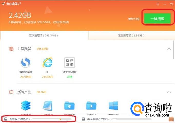 毒霸会扫描C盘,并清理出系统垃圾,我们只需点击“一键清理”即可。