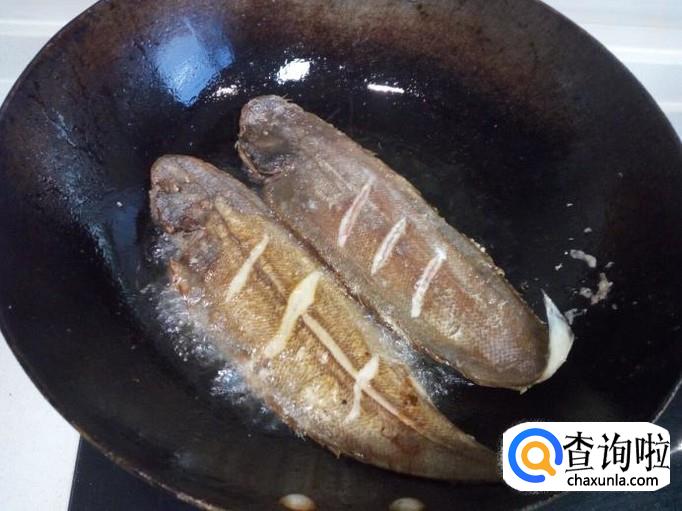 锅内放入油加热,油热后放入踏板鱼小火煎塌。