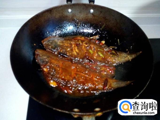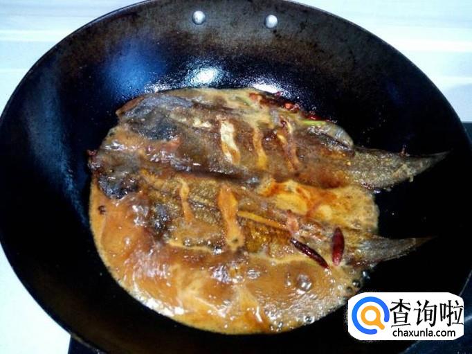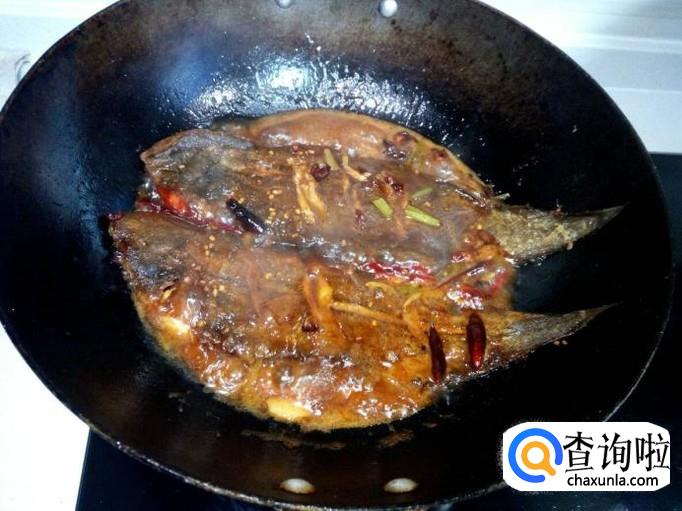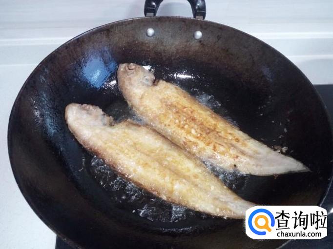 翻面煎塌至踏板鱼两面焦黄,盛出备用。