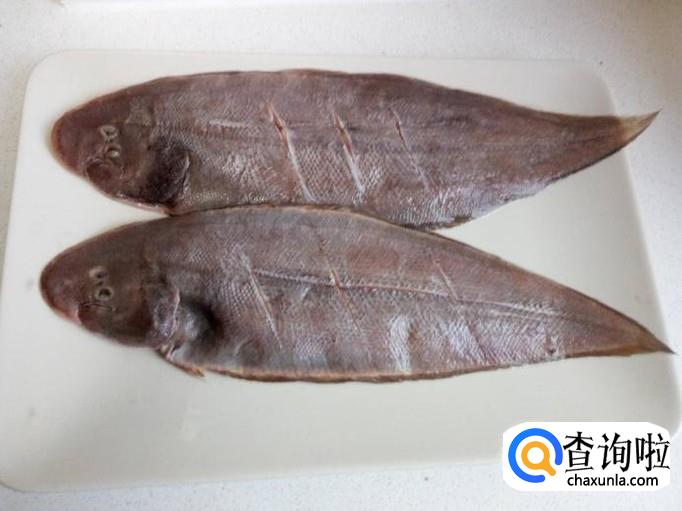 把踏板鱼收拾清洗干净,控干水分,然后在鱼身上划刀,便于入味。