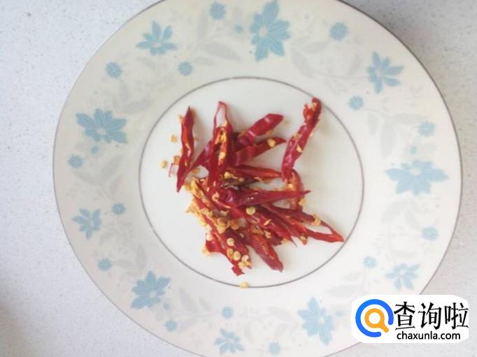 红干椒切成丝,切好葱,姜,蒜,备用。