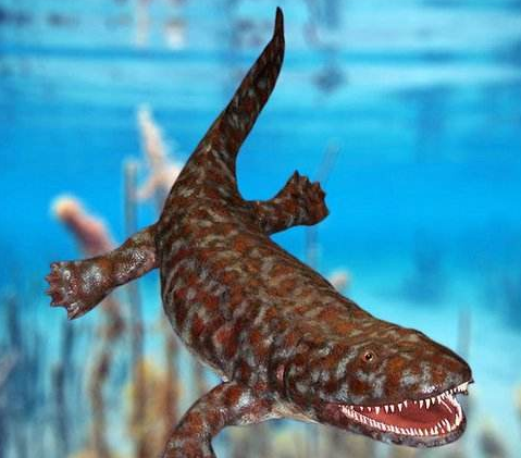 在距今三四亿年前,地球上发生了十分剧烈的地壳活动。大片陆地从海洋中升了出来,并逐渐出现了淡水湖泊或河流,也造就了各种复杂的地形和气候变化。有的湖泊、池塘在炎热干旱的气候中日渐干涸,这对于在其中生活的鱼类是严峻的考验。有些鱼类灭绝了,而预先做好登陆准备的那些四足形类则登上了陆地。